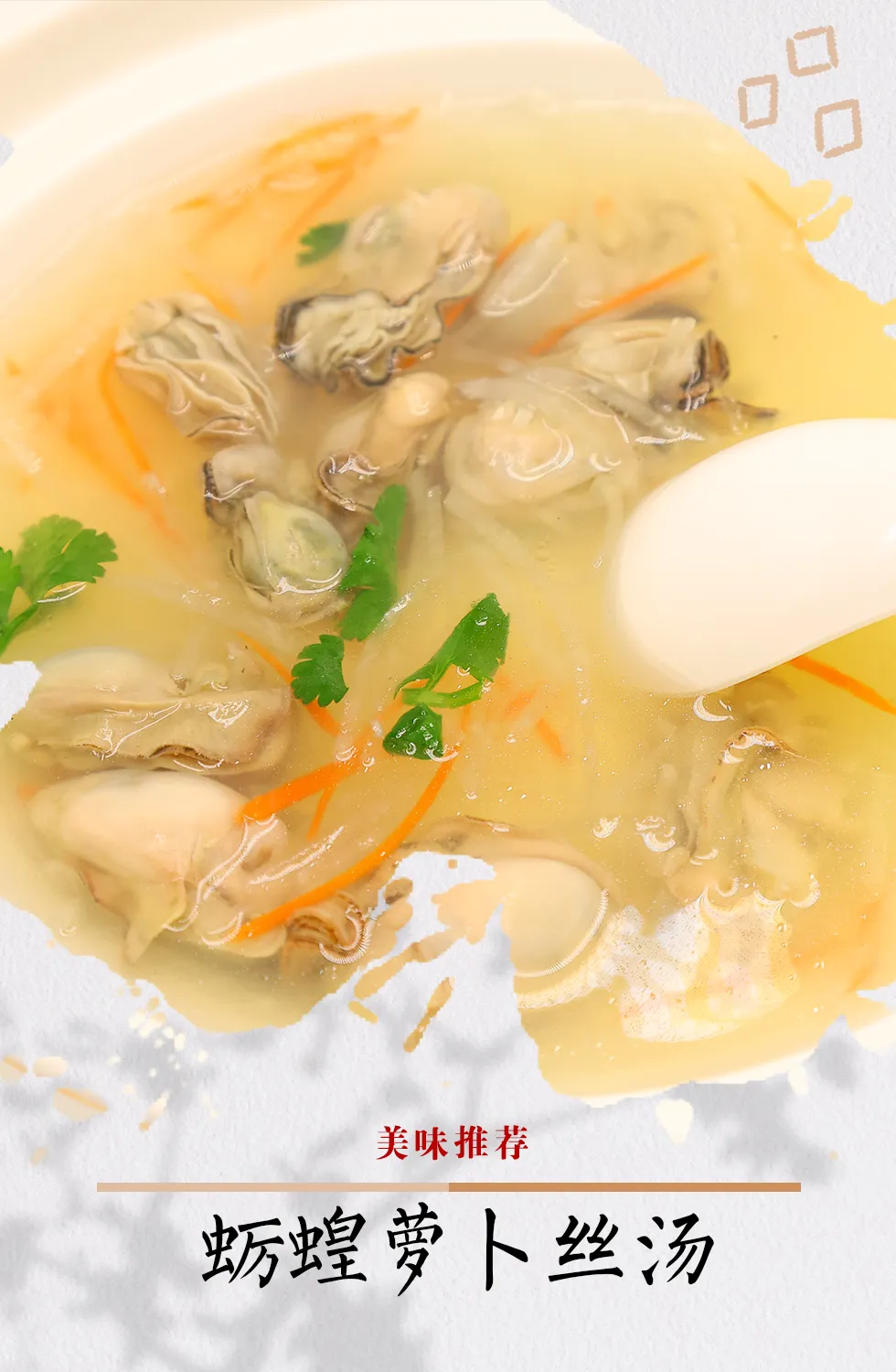 Oyster and Locust Radish Shredded Soup: 10g Oyster and Locust, 20g Radish