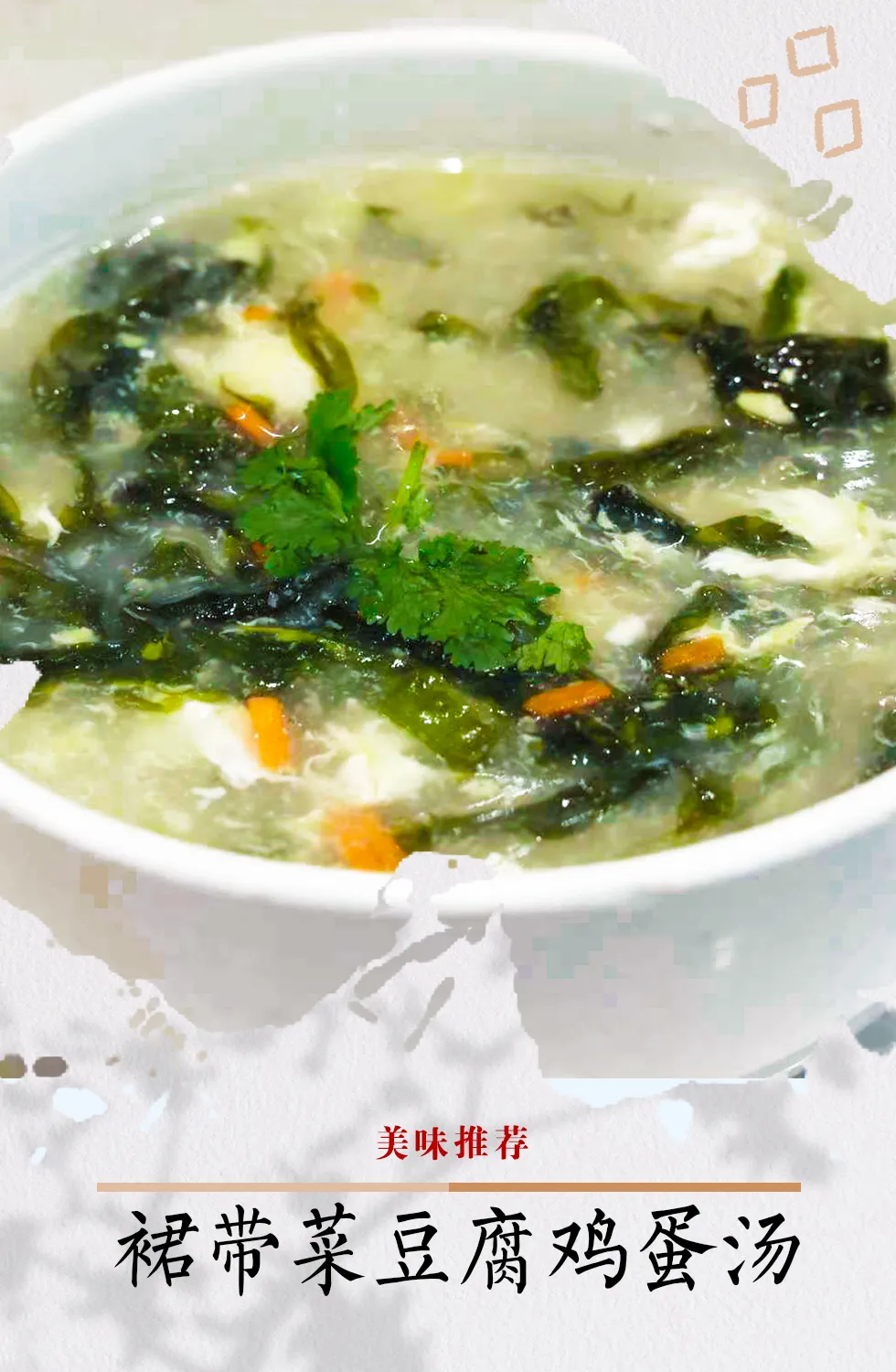 Tofu and Egg Soup with Skirt Cabbage: 5g Skirt Cabbage, 5g Tofu, 5g Egg