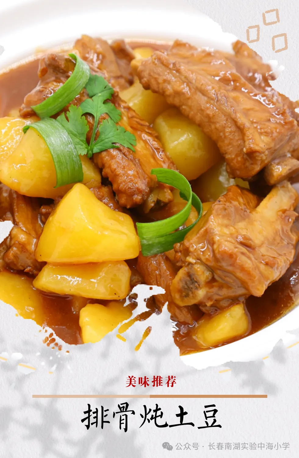 菜谱:锅包肉、排骨炖土豆、青笋木耳炒山药、烧茄子、棒骨汤。