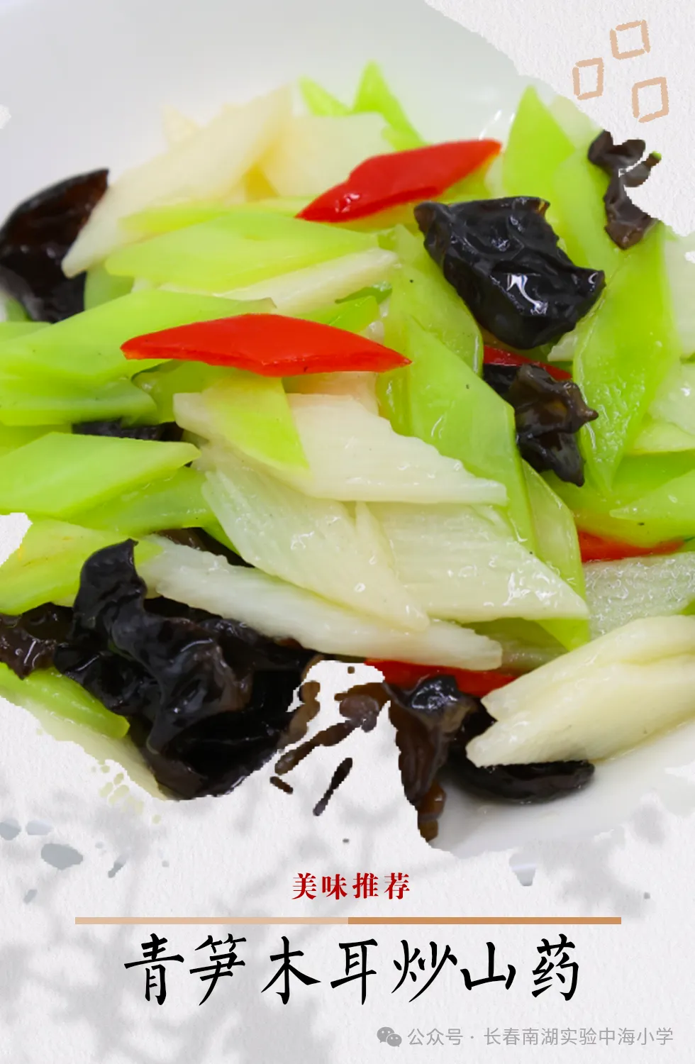 青笋木耳炒山药:青笋40克、木耳20克、山药30克;