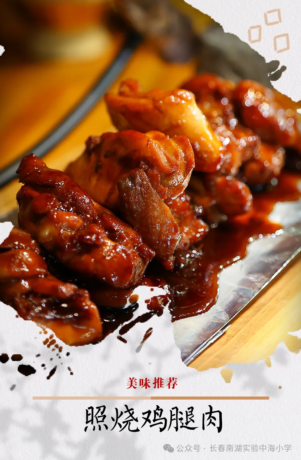 菜谱:照烧鸡腿、熘肉段、肉炒莴笋、蒜蓉茼蒿、小白菜肉丝汤。