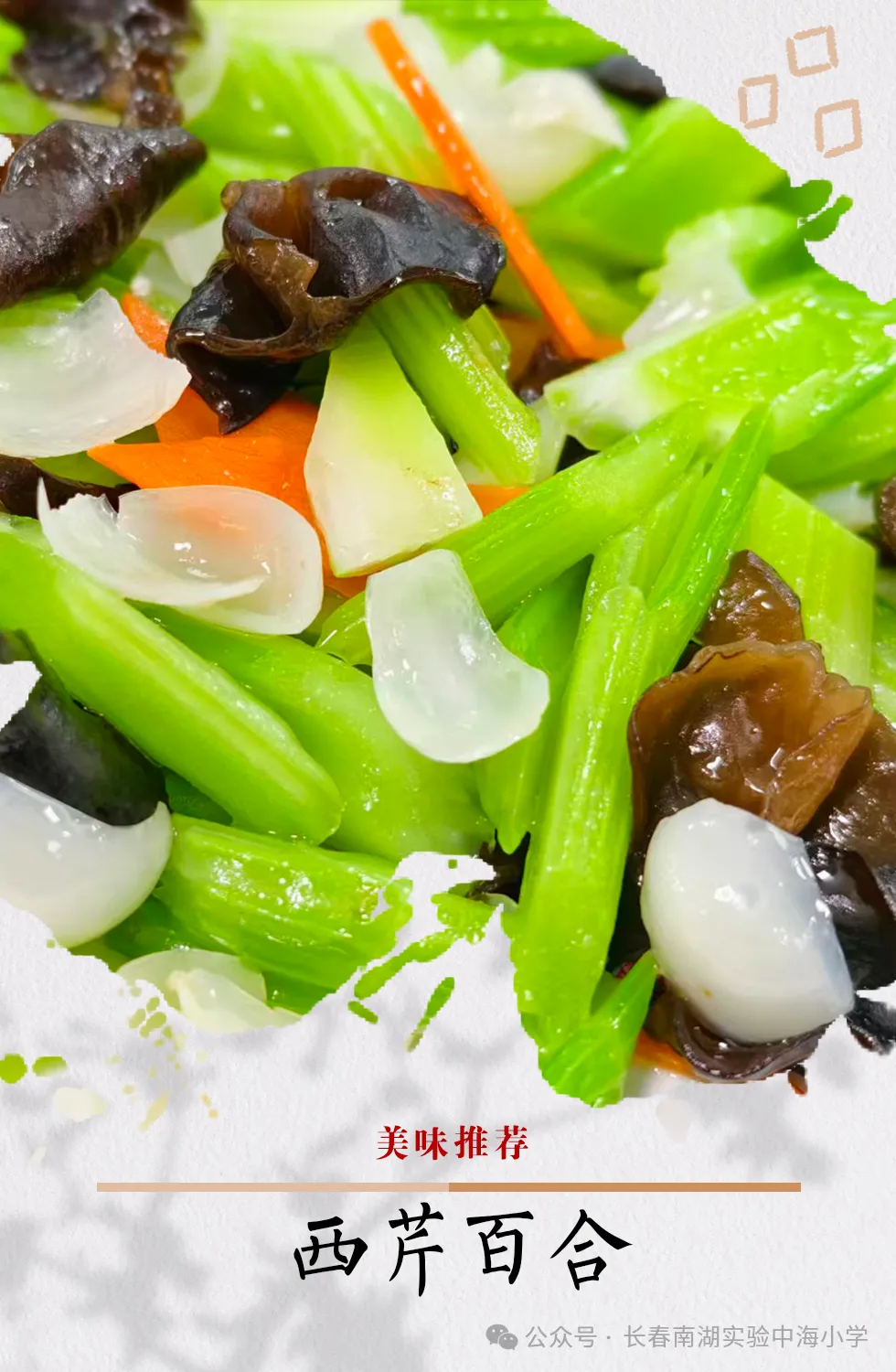 西芹百合:西芹40克、百合15克,木耳2克,胡萝卜2克;