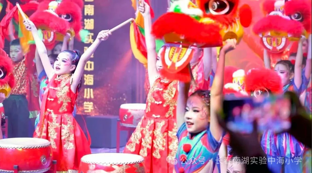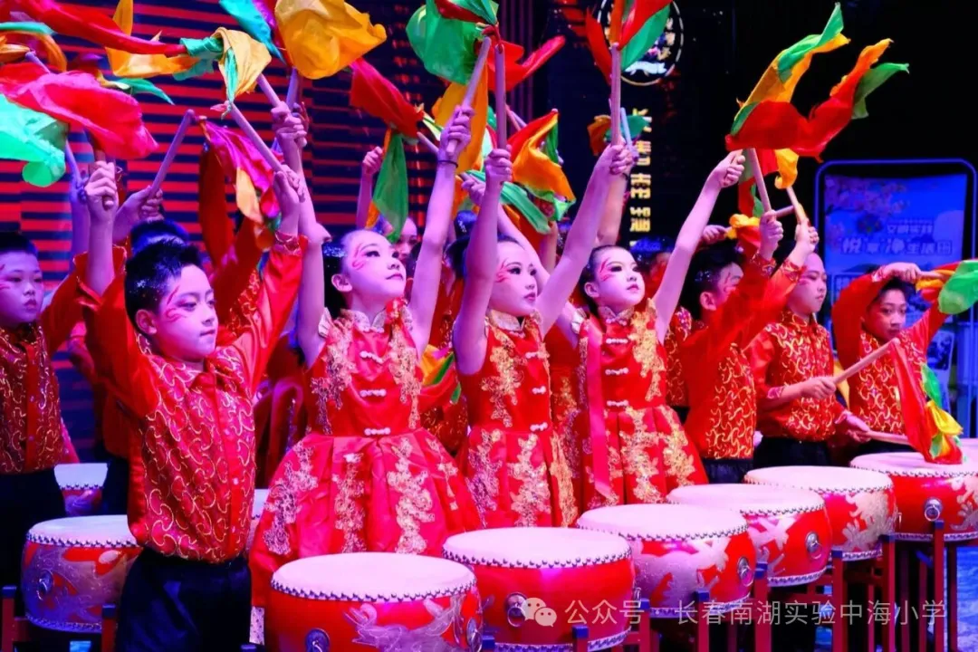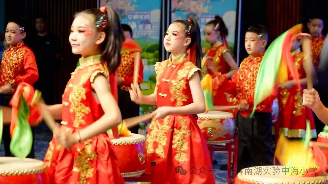 学校五年一班学生与海之音舞蹈团成员共同带来的《鼓乐中海》惊艳登场。节目将传统鼓乐与现代舞蹈完美结合,激昂的鼓点与灵动的舞姿交相辉映,瞬间点燃了全场观众的热情。学生们用充满活力的表演,展现了青春的朝气与对传统文化的热爱,赢得了阵阵掌声和喝彩声。