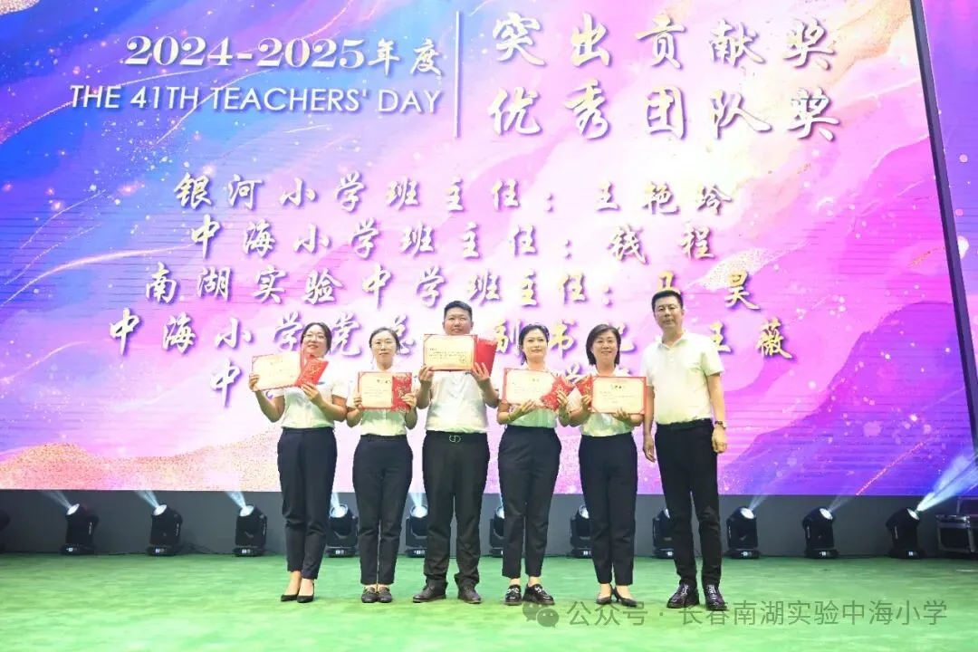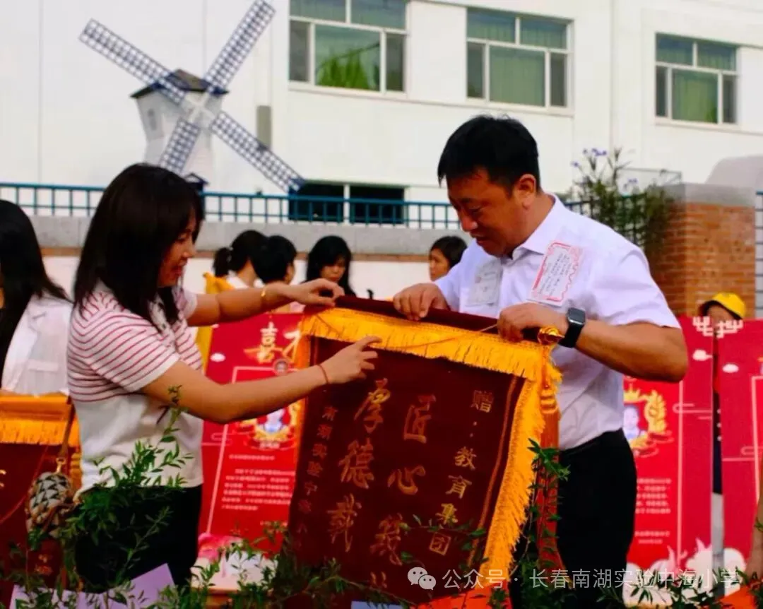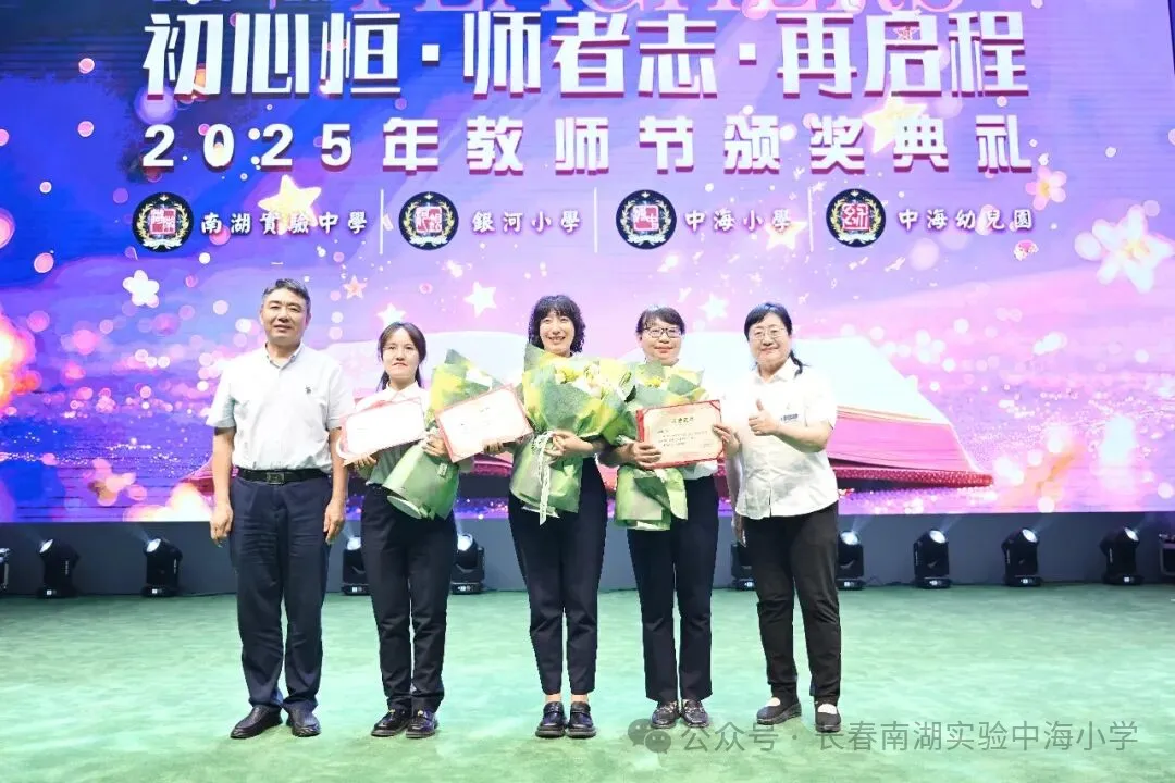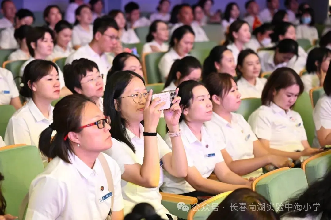 长春南湖实验中学新校园落地净月高新区,得到净月高新区各部门的关心和支持,尤其净月高新区教育局的各位领导一直关注项目进展,不仅多次实地调研、协调解决相关难题,还在政策指导等方面给予全方位支持,全力保障新校址建设顺利推进、搬迁工作平稳落地。这次教师节,净月高新区教育党委书记、局长徐洪兵,副局长王大亮更是亲临颁奖典礼,并为优秀“先进个人”及“先进班集体”颁奖。两位领导亲切慰问获奖代表,勉励全体教师,其深切关怀极大地鼓舞了全体教师坚守初心、奋发作为的热情。