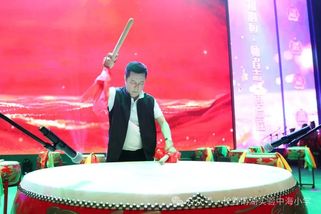 鼓震全场,舞绽风华——王祖良理事长率先挥槌击鼓,为教师节典礼拉开恢弘序幕,亦为新校区落成奏响庆贺乐章。其后《集团盛世 鼓乐中海》节目登场,其磅礴气象与开篇鼓声遥相呼应,更将学校的昂扬风采与少年的蓬勃朝气在盛典舞台上完美交融,尽显奋进之势。