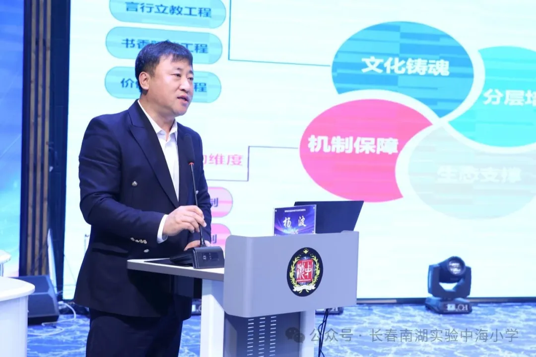 开幕式结束后,我校杨波校长以《赋能教师成长,激活育人动能——中海小学高质量发展的核心引擎构建》为题作经验分享。他系统解读了我校构建的“四维多元”教师发展赋能体系:以文化铸魂夯根基、分层培育搭阶梯、机制保障激动力、生态支撑拓空间,全方位助力教师成长,为学校高质量发展注入核心引擎。同时以具体实例分享了中海小学如何帮助教师在专业道路上持续进阶,构建学校高质量发展引擎。