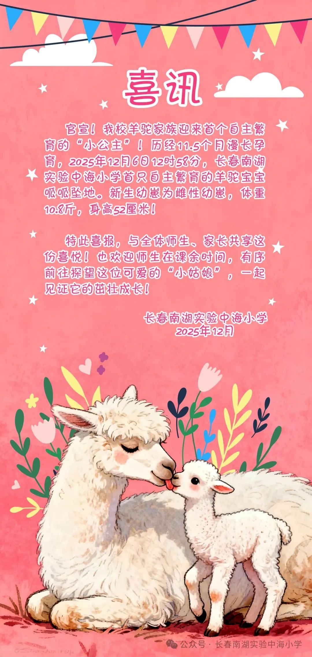 【南湖实验·中海小学】喜讯:“小公主”降生,中海校园喜迎首个自主繁育的羊驼新成员!