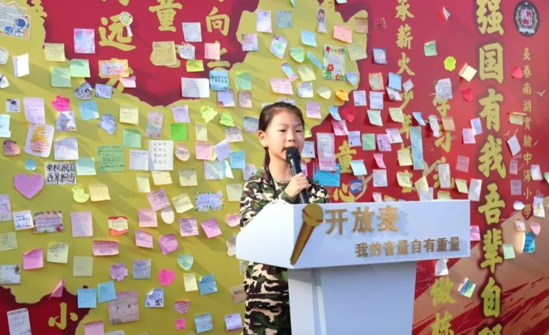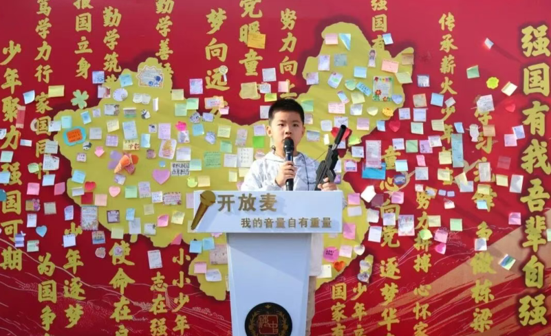 站上开放麦的讲台,海娃把爱国的种子,播撒在同学们的心中,这不仅是知识传递,更是与新时代共赴的信仰之约。